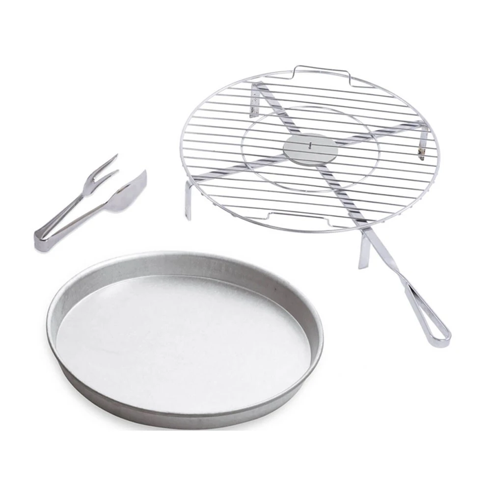 - Grillblech: passend zur Größe des Grills, schützt die Backfläche und ist ideal für das Auffangen des überschüssigen Fetts beim Garen