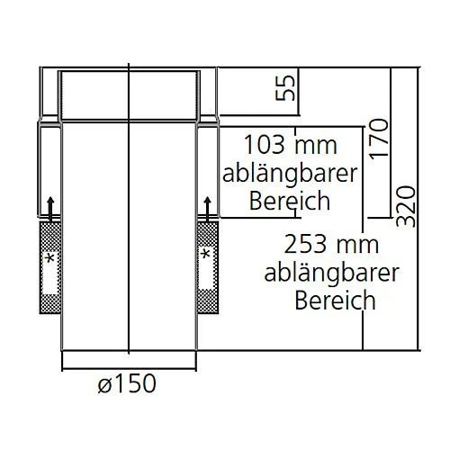 Anschlussstück An Ofenstutzen, Außenrohr Kürzbar, System Primus, 150 Mm