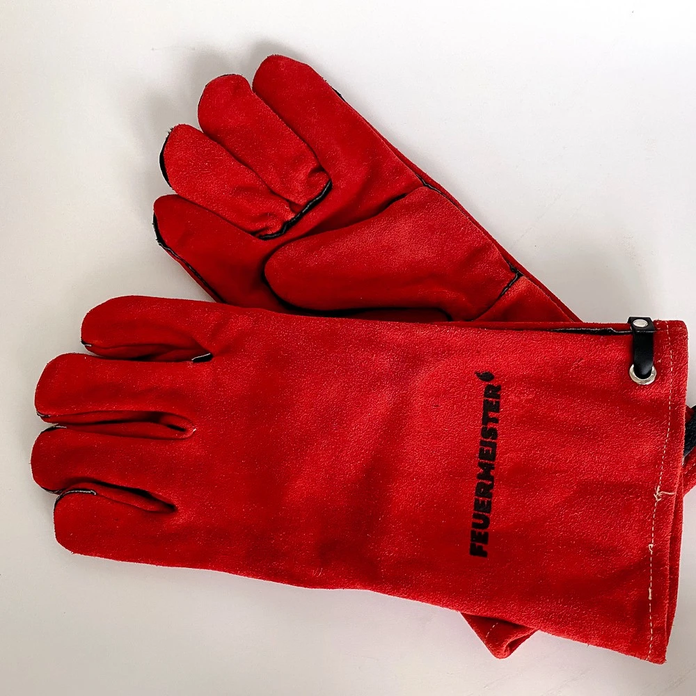 Der FEUERMEISTER 5-Finger-Grillhandschuh aus feinstem Spaltleder zeichnet sich ab durch seinen hitzebeständigen und besonders reißfestem Kevlargarn, erkennbar an der gelben Farbe. Das Innenleben besteht aus feinster Naturbaumwolle und sorgt für ein angenehmes Tragegefühl.Für das sichere Aufhängen des Handschuhpaares nach dem Grillen sorgt ein zusätzlich in zwei Ringösen angebrachter Lederriemen. Mittlerweile ein Muss für jeden Grillfan. Für eine bessere Widerstandsfähigkeit und Robustheit sorgt ein Nahtschutzstreifen aus Leder.