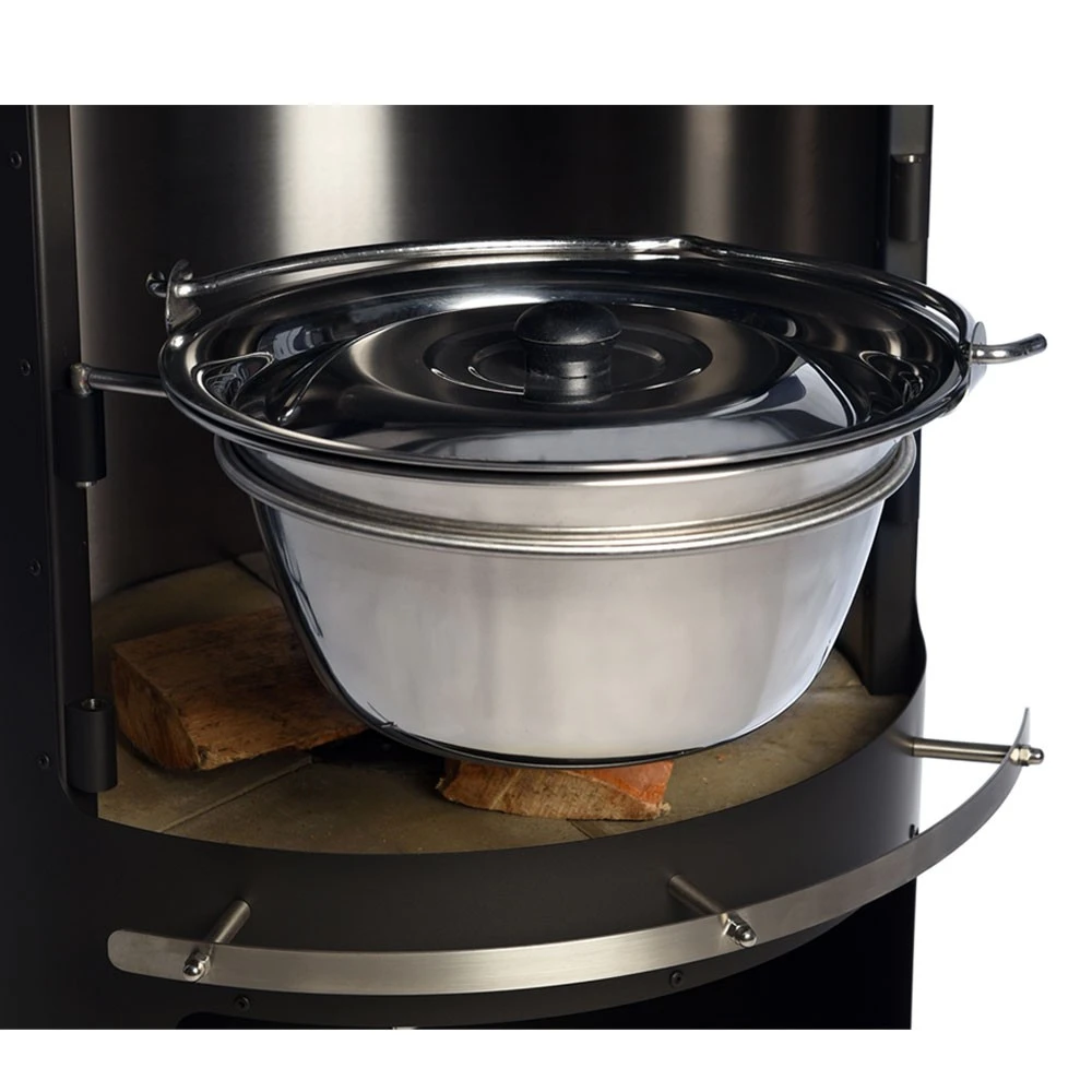 Der Firestar Gulschtopf oder für Glühwein, Suppen, Eintöpfe, heiße Bowlen oder oder, lässt sich in den Terrasenkamin einfach einhängen und köchelt so vor sich hin. Er hat ein Fassungsvermögen von 6 Litern und wird inkl. Deckel geliefert.
