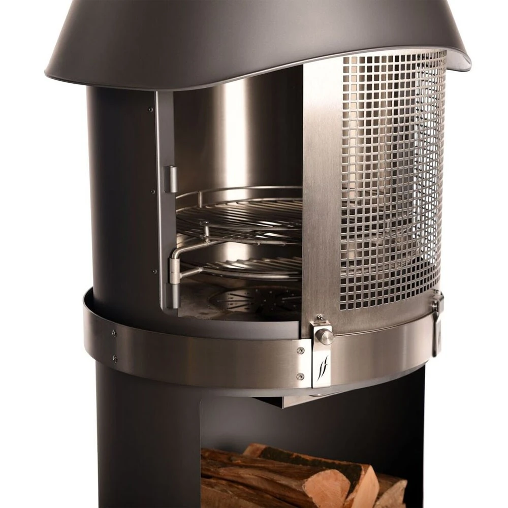 Die um 360° umlaufende Funkenschutztür sorgt beim Firestar SWING CLASSIC für unübertroffenen Komfort. Zudem überzeugt er natürlich nicht nur mit seiner Einzigartigkeit sondern glänzt mit den gleichen hervorragenden Brenneigenschaften wie alle Firestar Modelle. Wird der Funkenschutz nicht benötigt, so kann er einfach nach hinten an den Brennraum geschoben werden. Die hochwertige Tür – Konstruktion sorgt dank 4-Edelstahl Kugellagern für ein zuverlässiges und leichtgäniges schließen. Zudem bleiben alle 4-Schaniere im Brennraum frei, um etwaiges Zubehör wie Grillrost oder Steakpfanne einzuhängen. Besonders gut für die Niedriggarmethode geeignet.