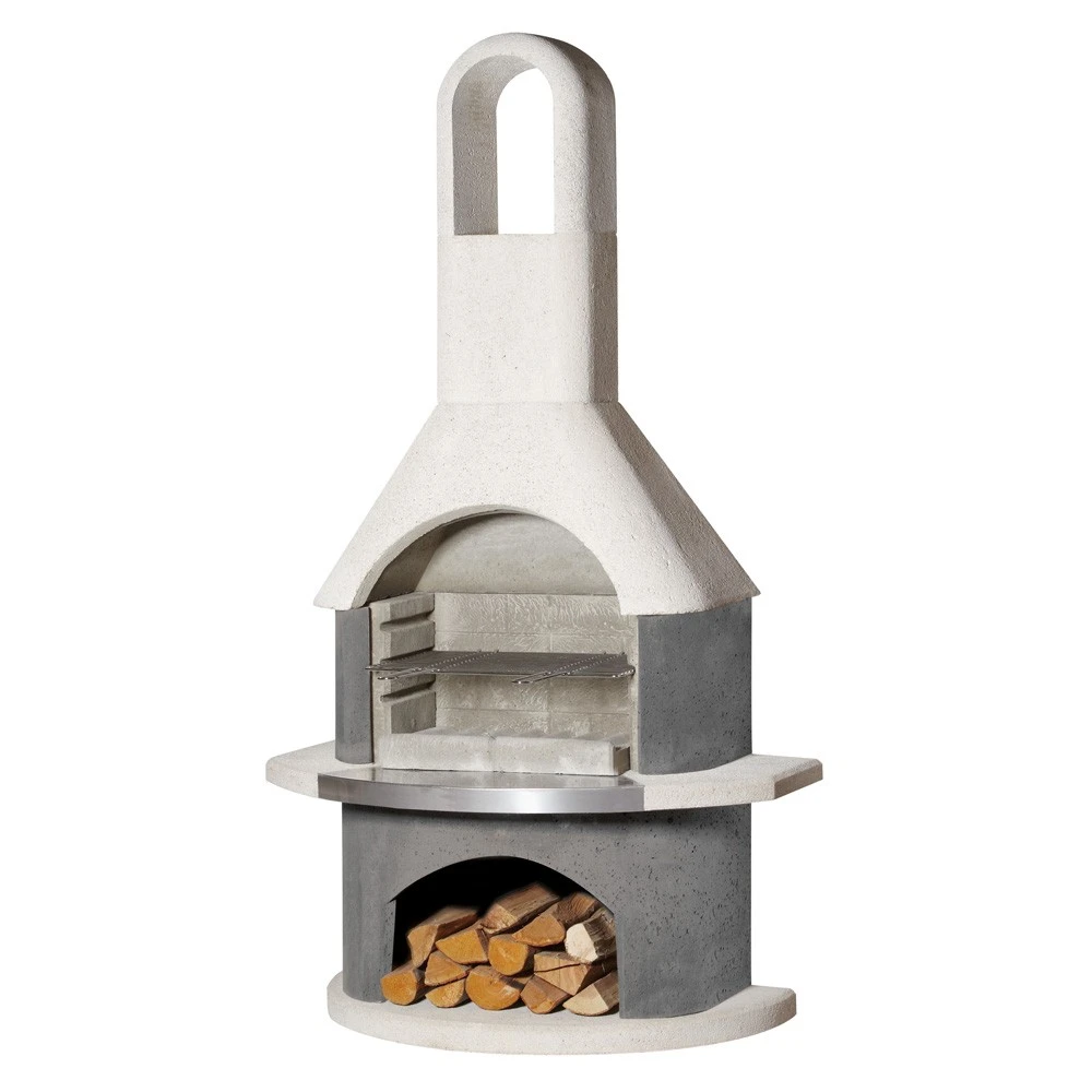 Der Grillgartenkamin Stockholm kommt rustikal-elegant daher. Die Feuerraum- und Holzfachverkleidung aus edel-grauem Strukturbeton steht in einem feinen Kontrast zu der eleganten weißen Oberfläche der anderen Bauteile. Die dekorative Edelstahlblende sorgt zusätzlich für einen exklusiven Touch.