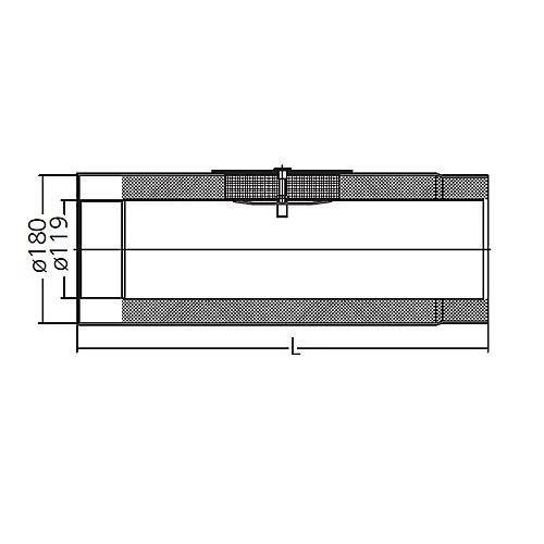 | Durchmesser innen : Durchmesser außen: Materialstärke Innenrohr: Materialstärke Außenrohr: Dämmstoffstärke: Länge (L): | 120 mm 184 mm 0,6 mm 2,0 mm 25 mm 1000 mm |