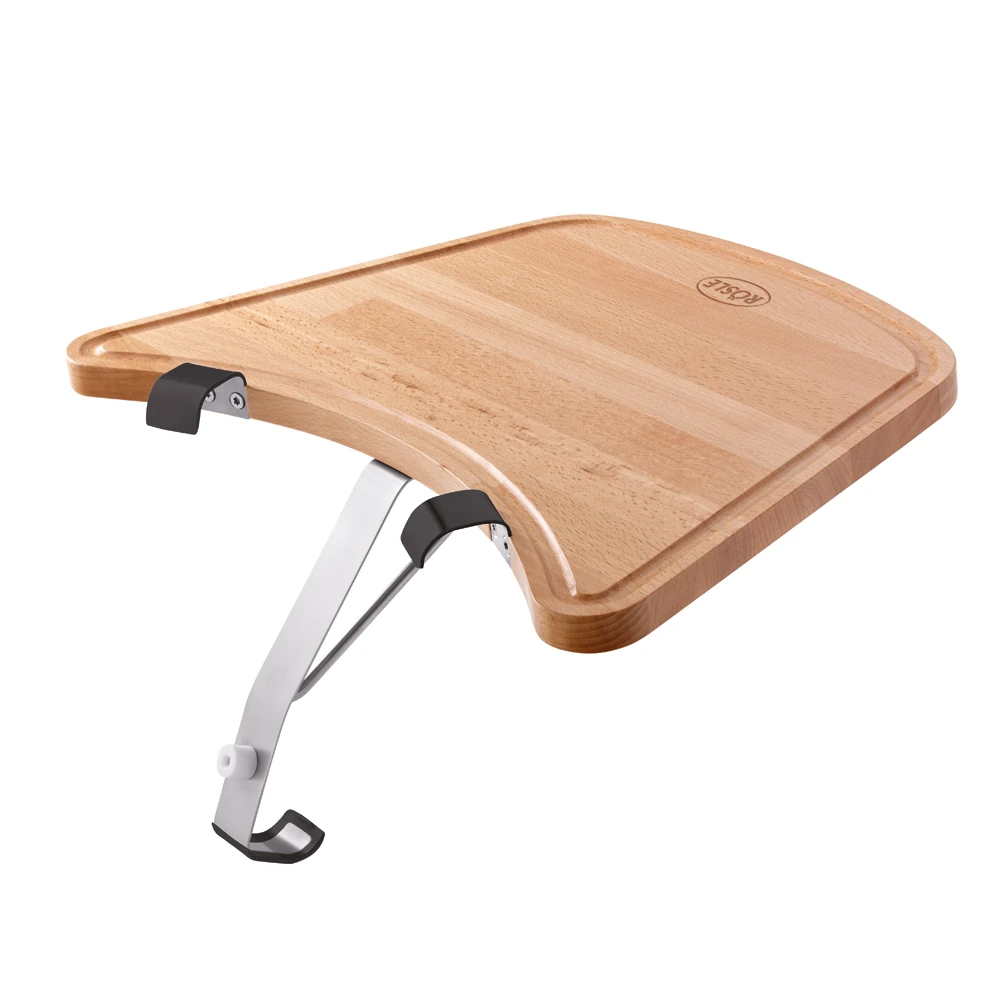 Das Ablagebrett von RÖSLE besteht aus lackiertem Buchenholz und verfügt über eine Saftrille.