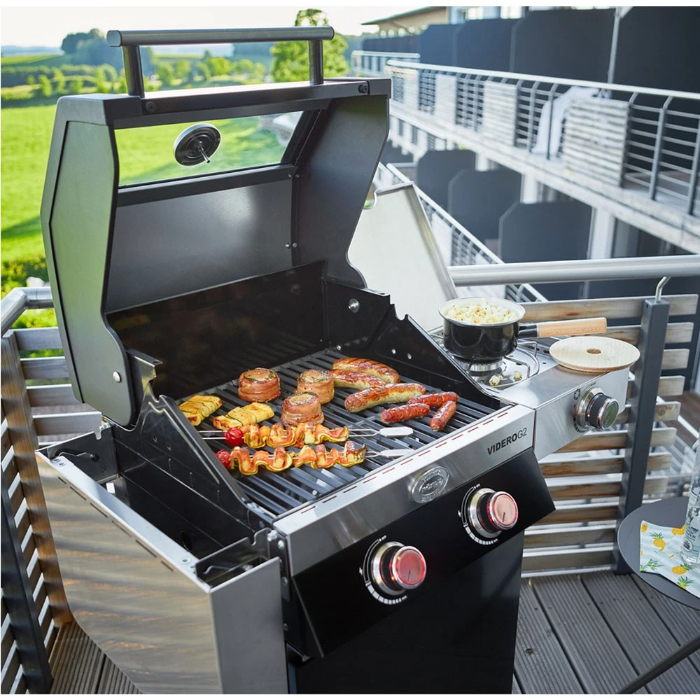 Die Gasgrill-Reihe Videro von Rösle hat Zuwachs bekommen. Der Videro G2 ist der perfekte Grill für alle, die einen kleinen Balkon oder kleinere Terrasse haben. Die Seitentische lassen sich bei Bedarf oder zum Verstauen einfach abklappen, ohne Werkzeug. Der Videro verfügt über Ausstattungen, die sich bei nur wenigen anderen Gasgrills finden lassen. Der Korpus dieser BBQ-Station ist in Edelstahl gefertigt.