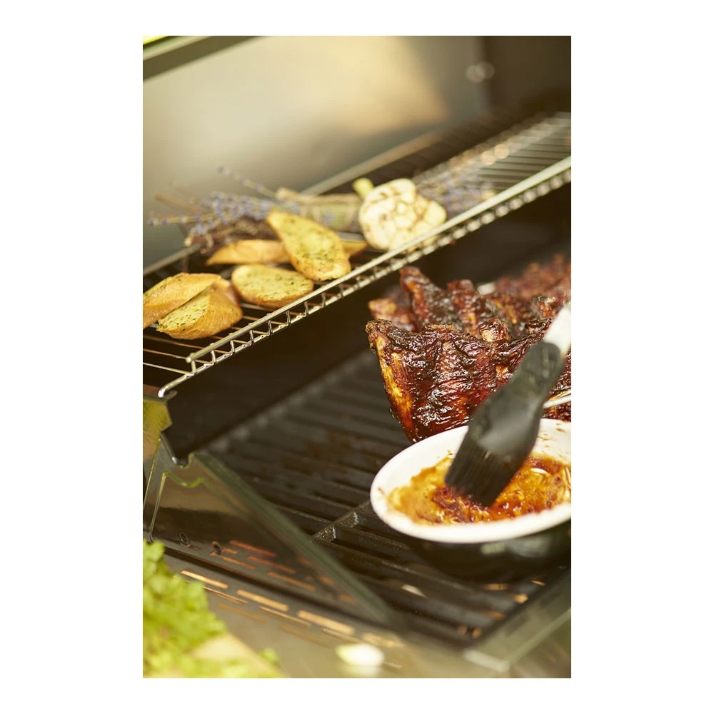 Ein großes Sichtfenster in der Grillhaube lässt das Grillgut auch bei geschlossenem Deckel nicht unbeobachtet. So kann jederzeit per Sichtprüfung entschieden werden, ob und wann Hand angelegt werden muss, ohne den Garprozess zu unterbrechen. Unnötiges Öffnen des Deckels verkürzt die Grillzeit und spart Energie. - Ergonomische Arbeitshöhe