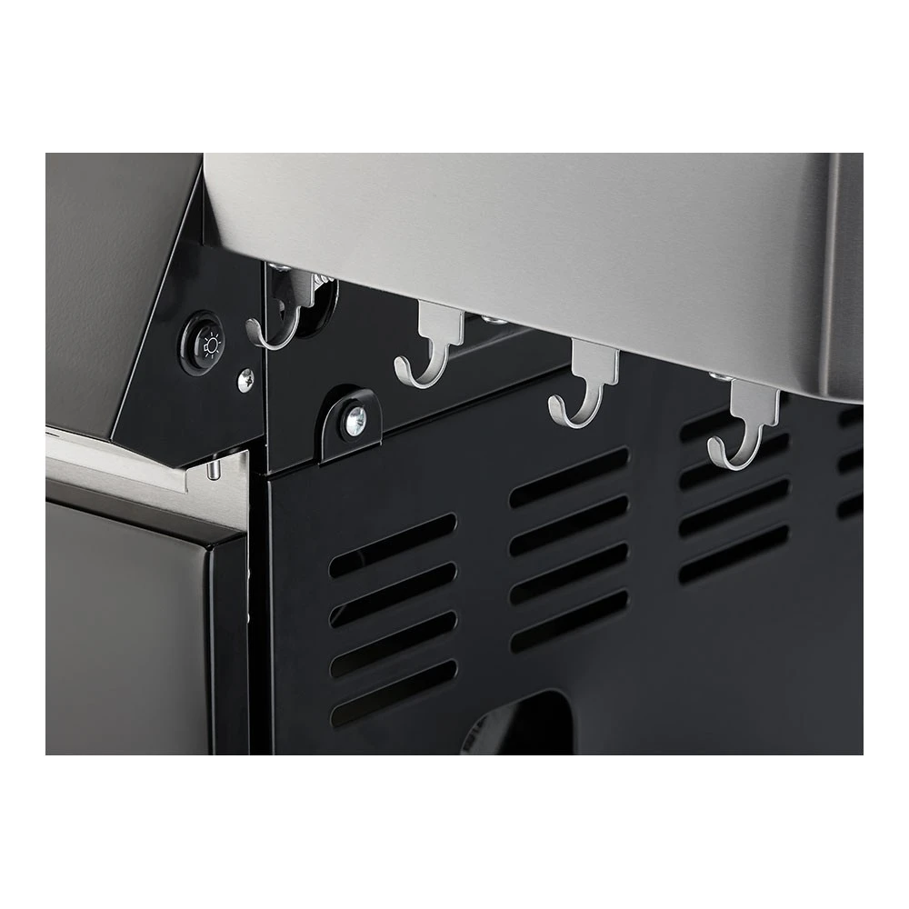 Ordnung halten leicht gemacht. Damit die Grillwerkzeuge nicht mehr irgendwo zwischenlagern müssen, hat der Videro G3 eine integrierte Hakenleiste für Grillzange, BBQ-Wender & Co. - Deckelthermometer