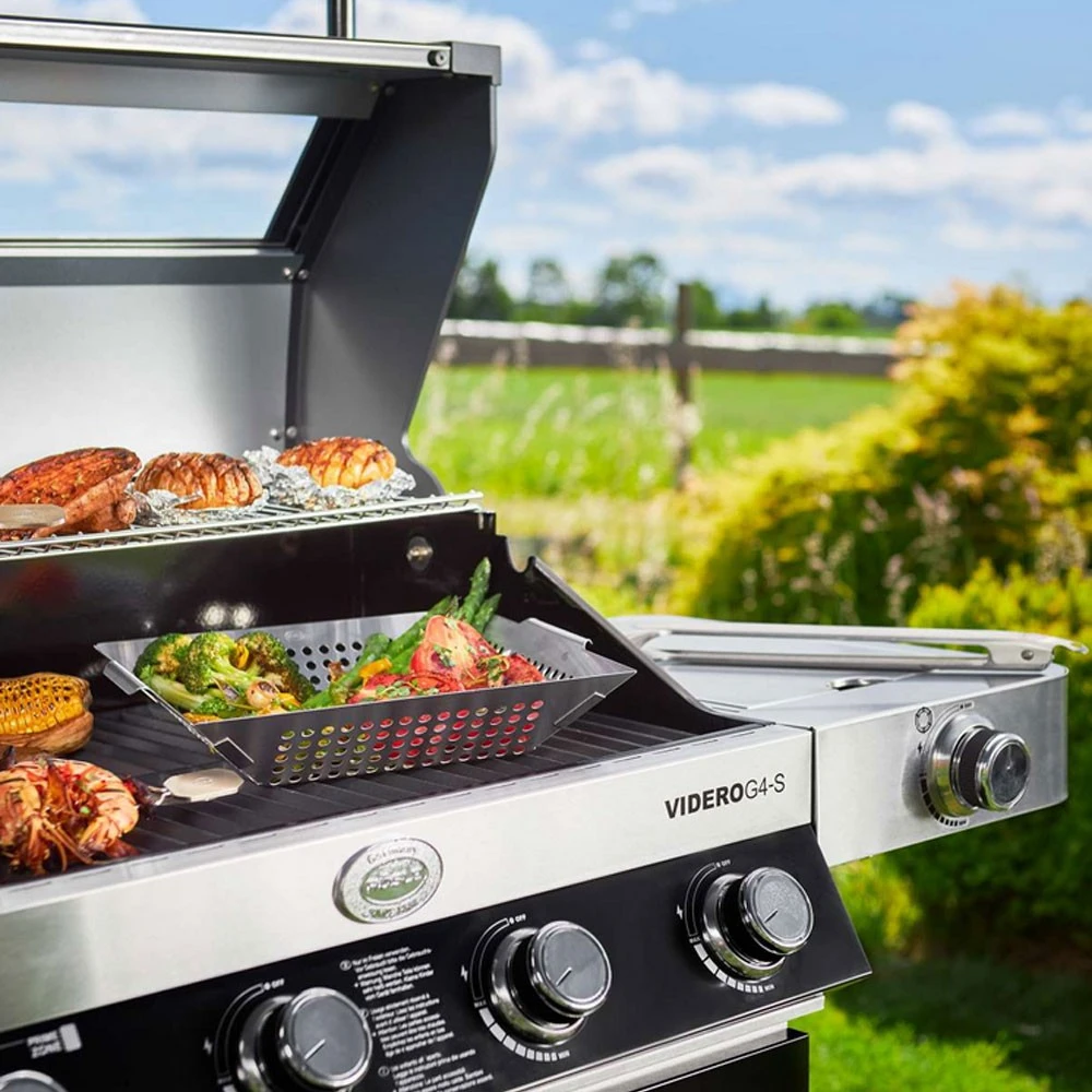Der Gasgrill Videro G6-S Vario+ ist allen Raffinessen, die Hochleistungs-Gasgrills zu bieten haben ausgestattet: Die schnelle Zündung und kräftige Energie der Brenner, das große Temperaturspektrum und die gleichmäßige Hitzeentwicklung gepaart mit einer sauberen Verbrennung und jeder Menge Komfort – von der rückenschonenden Arbeitshöhe über seitliche Ablageflächen bis hin zum geräumigen Unterschrank mit viel Platz für Zubehör. Der Korpus dieser BBQ-Station ist in Edelstahl gefertigt und besitzt wie alle Gasgrills der Serie S Vario+ die extra heisse Primezone und das Grillrostsystem inklusive.