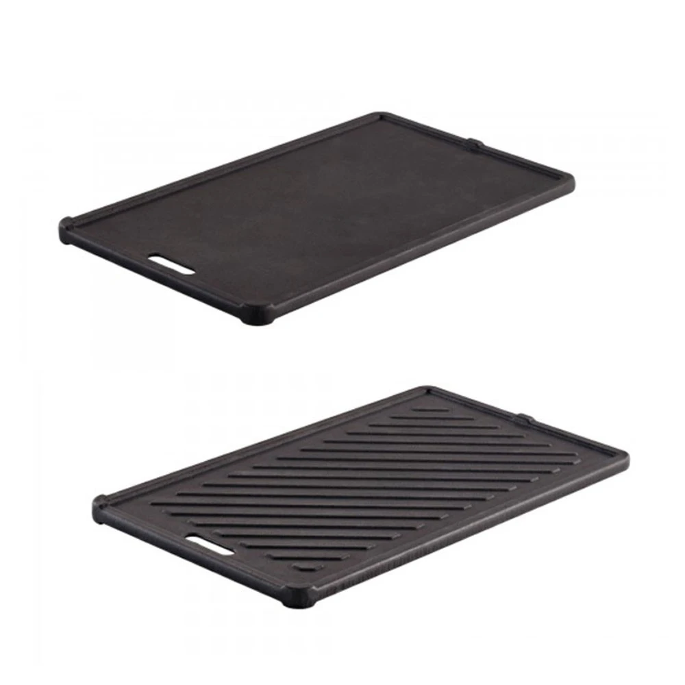 - Glatte Seite für die Zubereitung von kleinen Grillstücken wie z.B. Garnelen, Burger, Medaillons, Gemüse usw.