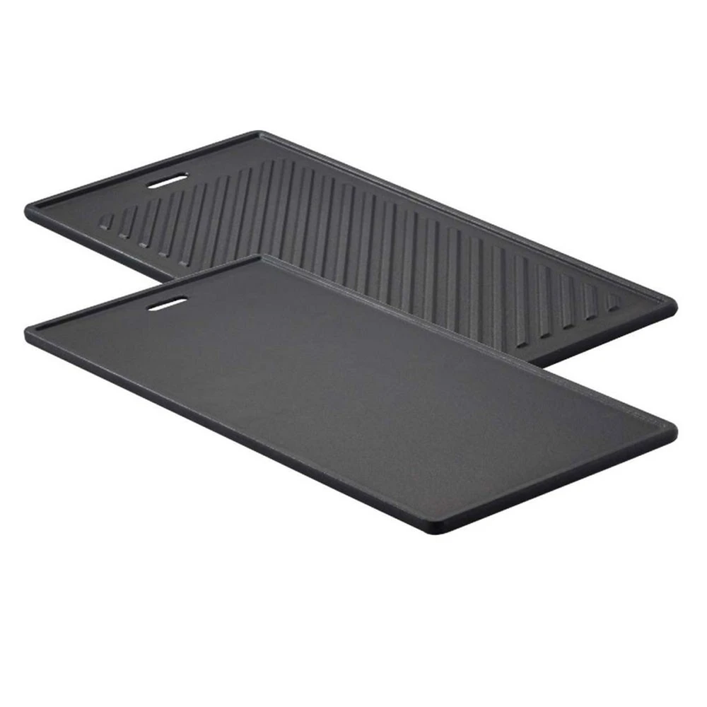 - Glatte Seite für die Zubereitung von kleinen Grillstücken wie z. B. Garnelen, Burger, Medaillons, Gemüse usw.
